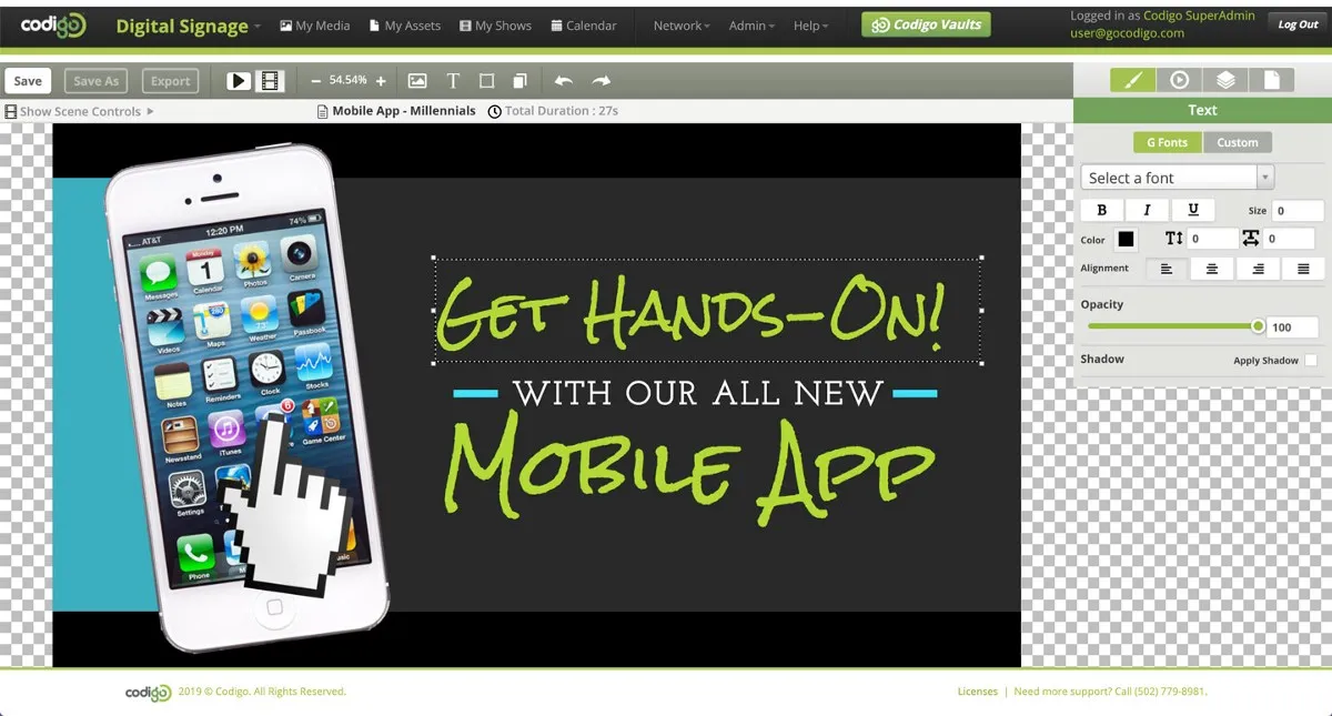 Codigo is a company that specializes in Digital Signage and Kiosk products. The ability to customize existing templates or create your own signage and kiosks from scratch is a feature that sets Codigo apart from their competitors in the market. Customization is done using the browser-based Content Editor.