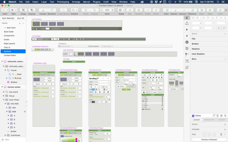 The last part of my research phase was to analyze the competition. It’s important to “think outside the box” when considering who your competitors are. In this case, I wasn’t aware of any other browser-based digital signage editors at the time, but I was familiar with several different design tools that provided me with plenty of new ideas and inspiration. These tools included Photoshop, Illustrator, Invision Studio, Google Web Designer, Keynote and the actual application that I used to create the designs — Sketch.
